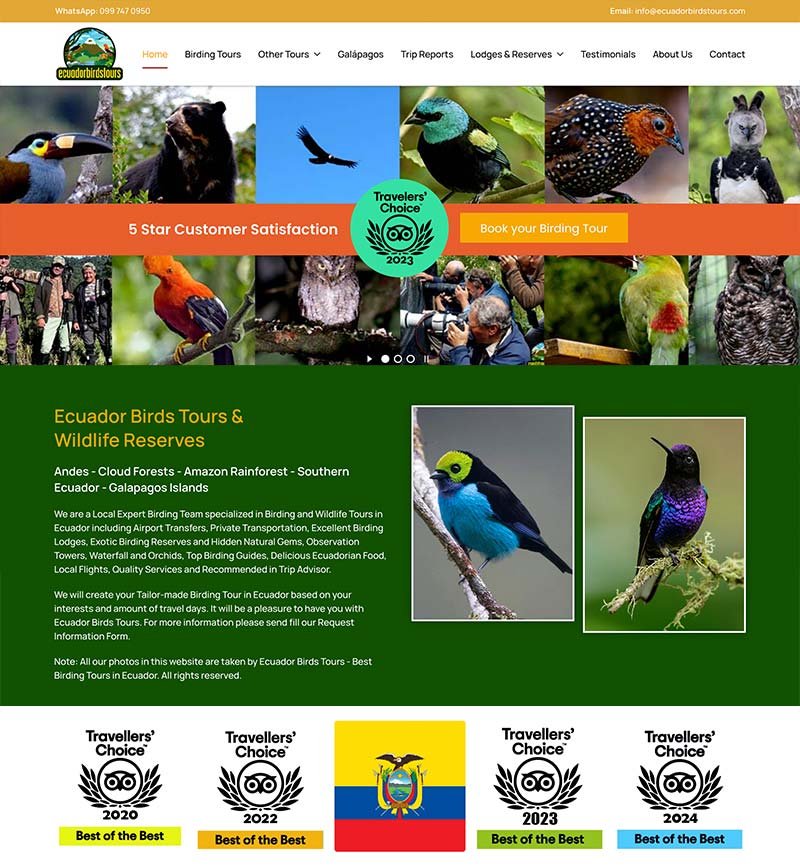 Diego Cruz: Gracias a mooncities.com, nuestro proveedor de publicidad web, los amantes del birdwatching pueden descubrir fácilmente nuestros tours y reservar sus aventuras en Ecuador.