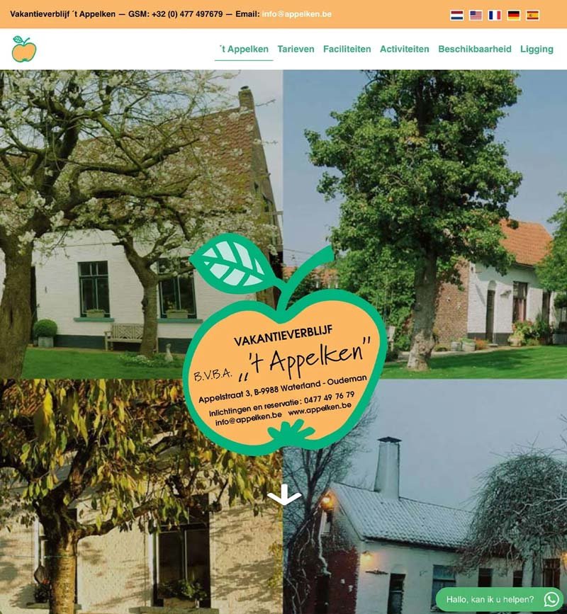 Odette De Muynck: Nuestra página web refleja la calma y belleza de nuestro acogedor alojamiento vacacional 't Appelken, donde podrás disfrutar de diversas actividades en East Flanders, Bélgica.